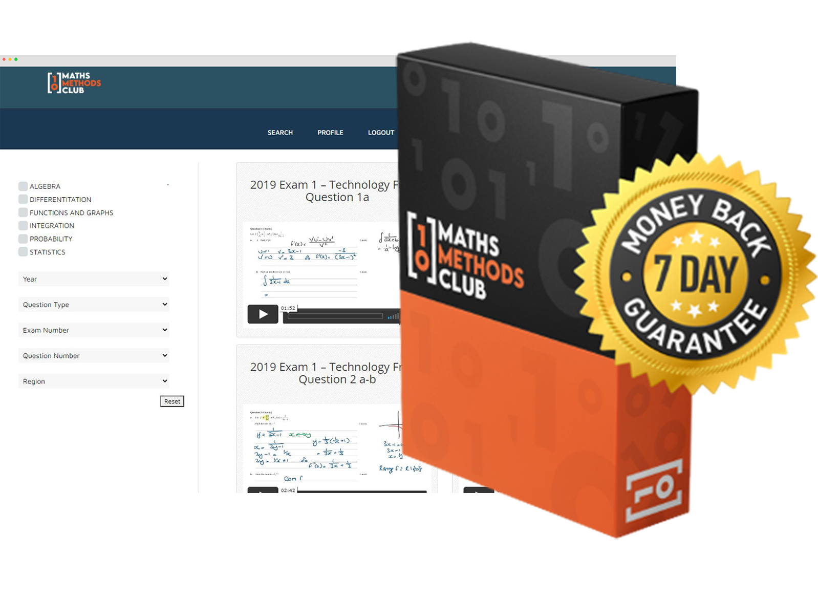 7-Day Money Back Guarantee. Try The Maths Methods Club to help you better prepare for SACs and exams so you can attain the awesome study score you deserve. If at any time during the first 7-day period you aren’t happy, just send me an email, and I’ll issue you a full refund, no questions asked.