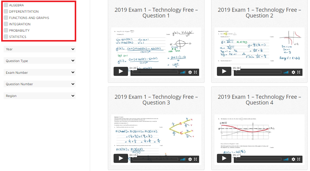 With The Maths Methods Club, you’ll get video solutions to over 1250 official exam questions (this includes sub questions) – without wasting time and money.