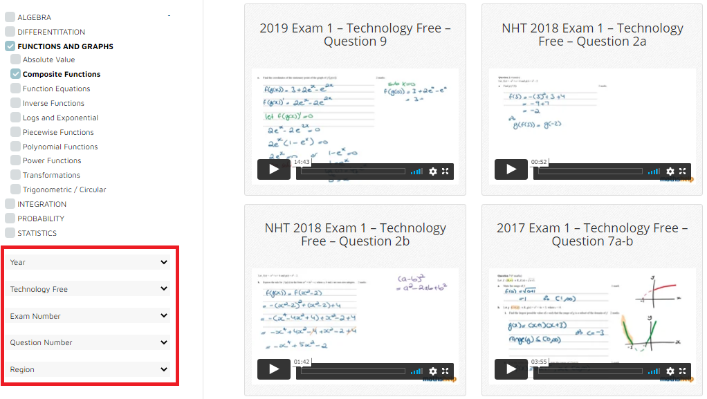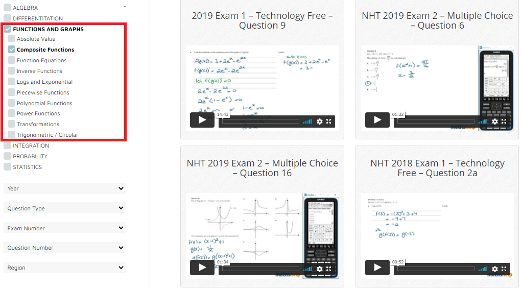 Click on Composite Functions and you’ll see past exam questions related ONLY to Composite Functions.